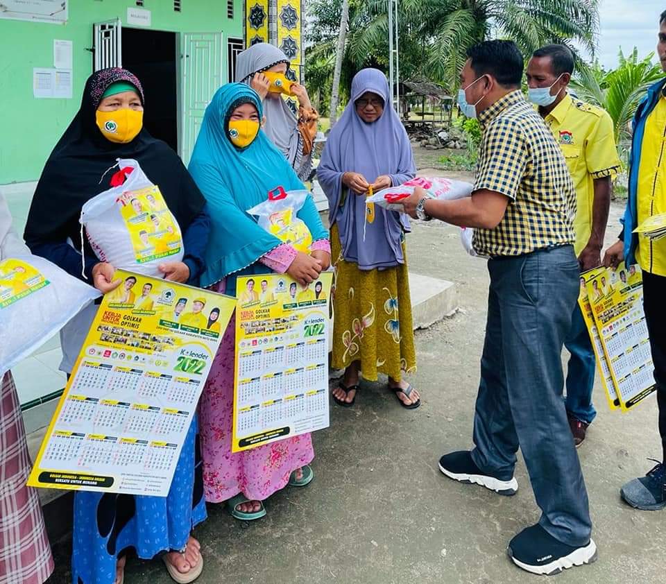Ketua DPD Partai Golkar, Ismar Khomri mengatakan adapun bantuan yang di berikan berupa beras, Masker, dan Kalender.