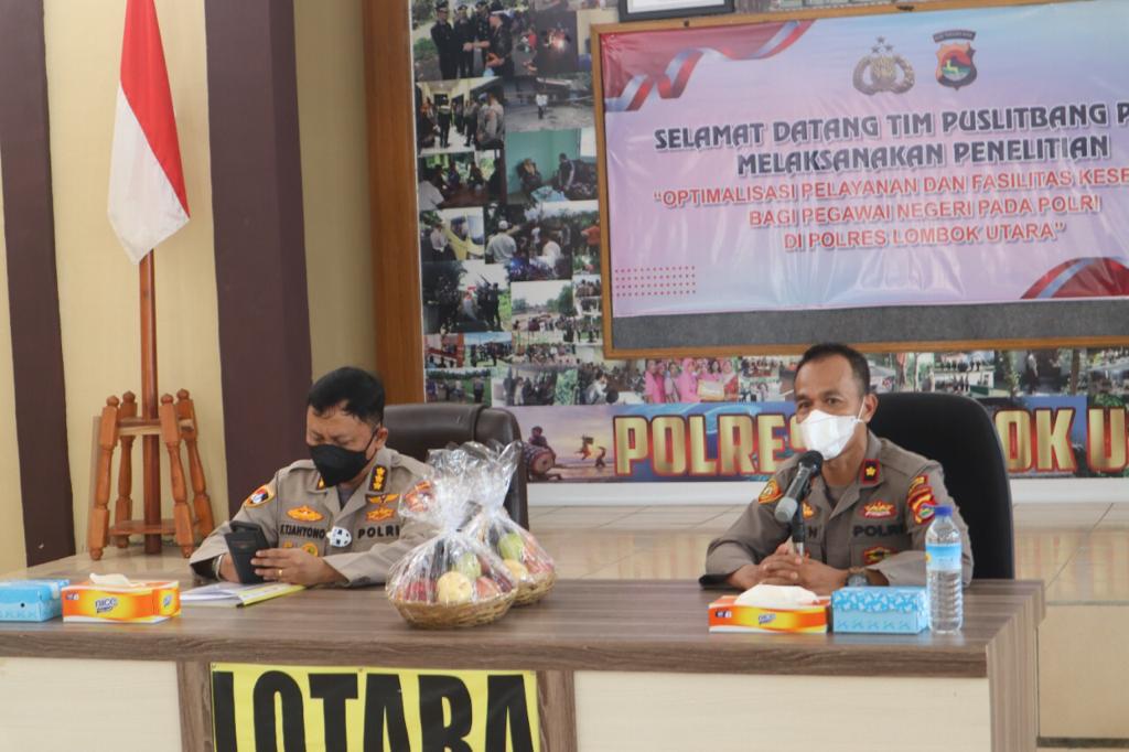 Polres Lombok Utara Polda NTB menerima kunjungan dari Tim Pusat Penelitian dan Pengembangan (Puslitbang) Polri bertempat di Gedung Sarja Arya Racana (SAR) Polres Lotara Selasa (8/3/2022).