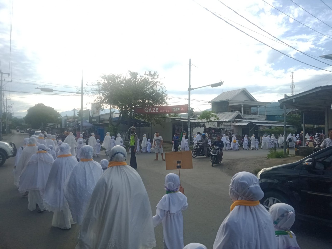 Lombok Utara – infoaktualnews.com. Polres Polsek Pemenang, melaksanakan pengamanan dan pengawalan terhadap kegiatan pawai Manasik umrah yang diselenggarakan oleh yayasan pondok pesantren Al-Hikmah Pemenang barat
