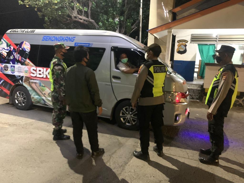 Kepolisian kawasan pelabuhan laut tano bersama petugas gabungan posko PPKM melakukan pemeriksaan kepada pengguna jasa yang akan melakukan penyebrangan ke pulau Lombok bertempat di posko PPKM dan gerai vaksin pelabuhan tano Kecamatan Poto Tano Kabupaten Sumbawa Barat pada selasa (8/3/22)