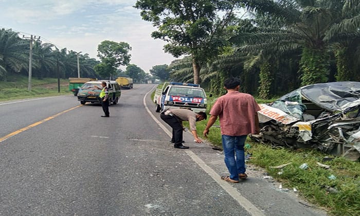 Diduga karena kurang hati-hari, di TKP mobil ambulance kehilangan kendali sehingga oleng ke kanan. Dari arah berlawanan muncul truk tronton yang dikemudian Parmin (40) warga Air Batu dan keneknya M. Yunus (27) warga Kisaran Timur.
