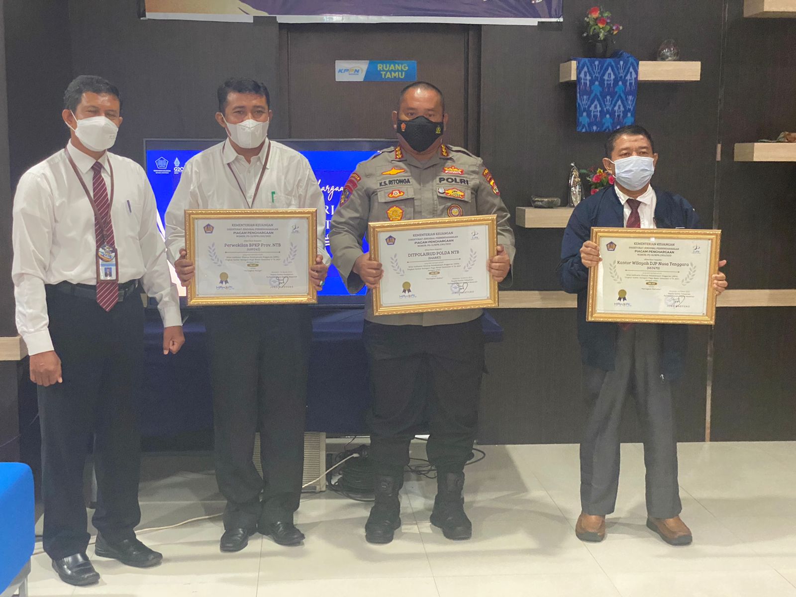 Piagam itu diterima langsung oleh Direktur Polisi Air dan Udara (Dir Polairud) Polda NTB Kombes Pol Kobul Syahrin Ritonga di Kantor KPPN, di poldaNTB  Senin (28/3/2022).