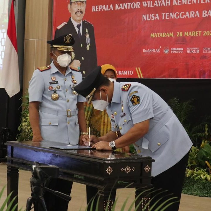 Sumbawa, Infoaktualnews.com – Tampuk pimpinan Kantor Wilayah Kementerian Hukum dan Hak Asasi Manusia Nusa Tenggara Barat resmi berganti melalui prosesi Serah Terima Jabatan (sertijab), Senin (27/03). Romi Yudianto yang sebelumnya menjabat sebagai Kepala Kantor Imigrasi Kelas I Khusus TPI Soekarno-Hatta kini dipercaya memimpin Kanwil Kemenkumham NTB.