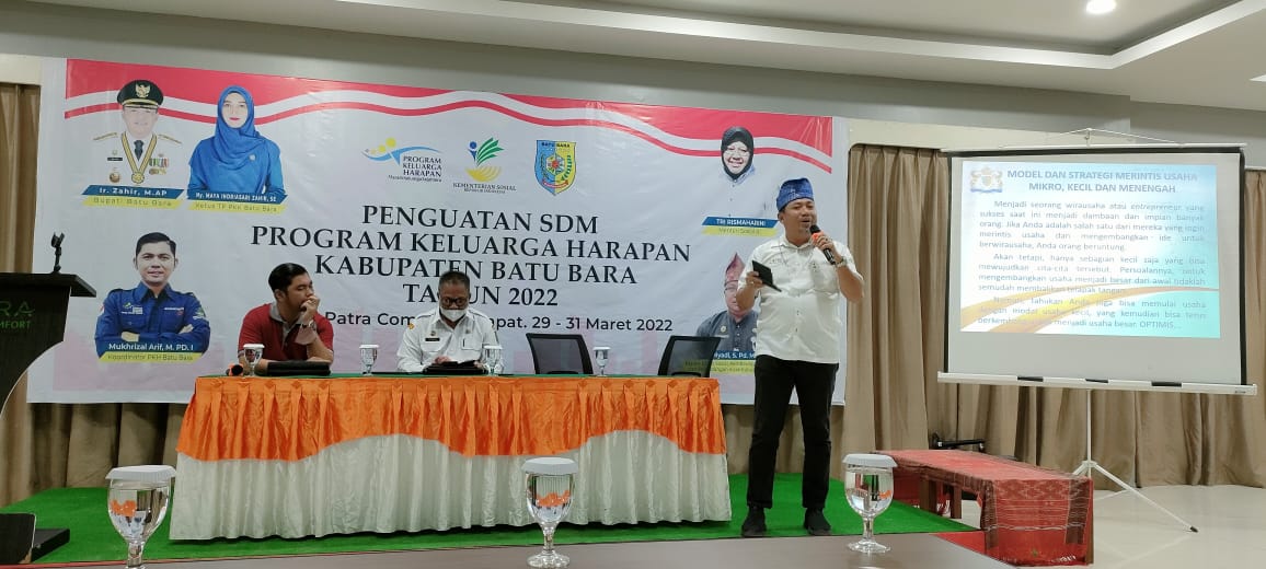 Kegiatan ini diisi oleh beberapa narasumber, Koreg PKH dari Kemensos RI, Korwil PKH Sumatera Utara, Korkab PKH Batu Bara, Kadis Sosial & PPPA Batu Bara, Ketua TP. PKK Batu Bara, serta ketua Kadin Batu Bara. Tutup Arif yang juga merupakan Ketua KNPI Batubara, (IA-RF).