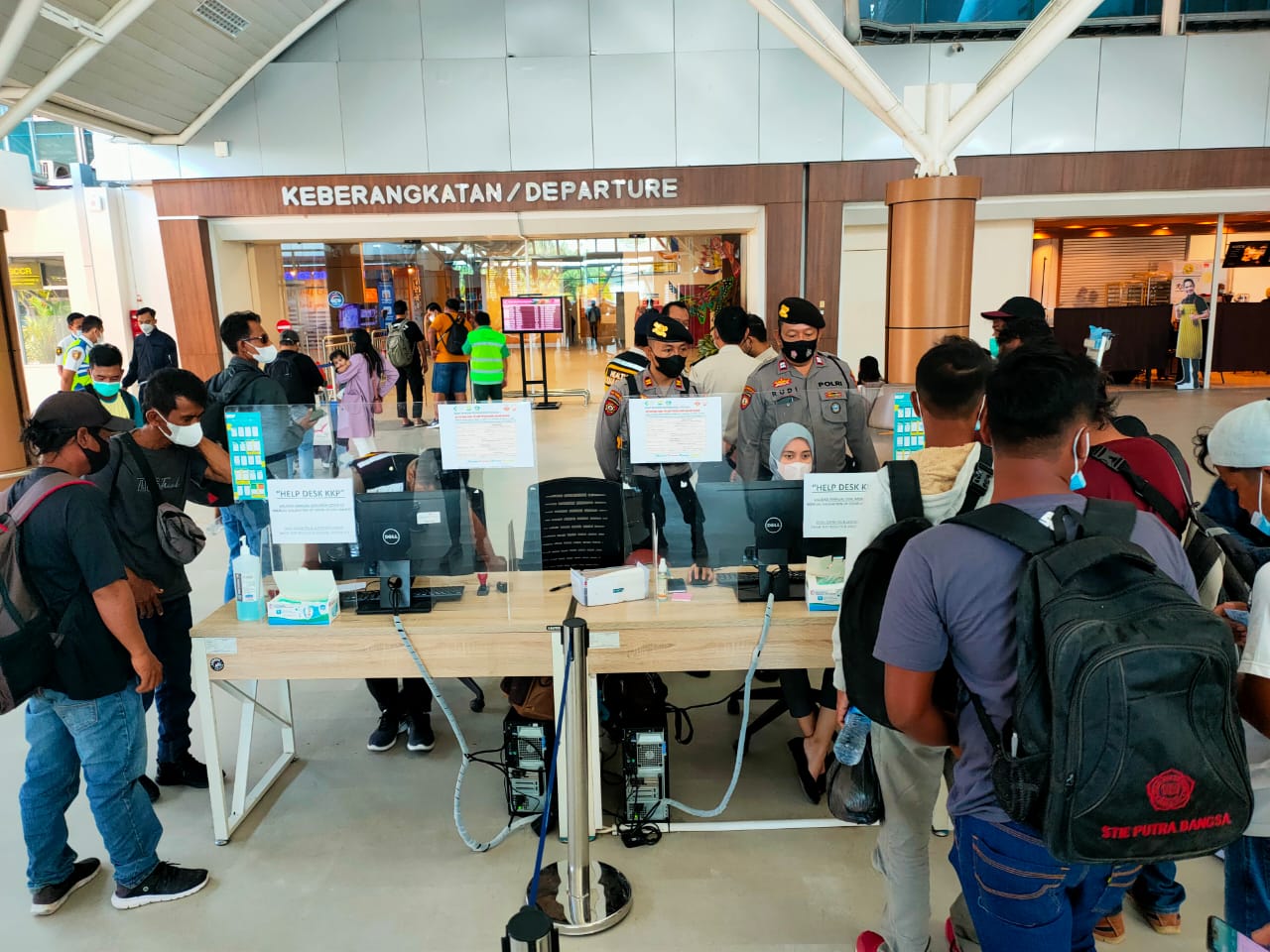 Tidak hanya patroli rutin dan pengamanan, kita juga siagakan pos pengamanan di depan bundaran luar Bandara, untuk memberikan pengamanan dan pelayanan bagi pemudik,” ujar Kapolres.