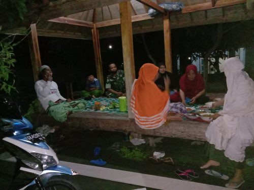 Terlihat Sertu Rohidin melaksanakan komunikasi sosial (Komsos) dengan masyarakatnya seusai melaksanakan sholat tarawih berjamaah di Masjid terdekat.
