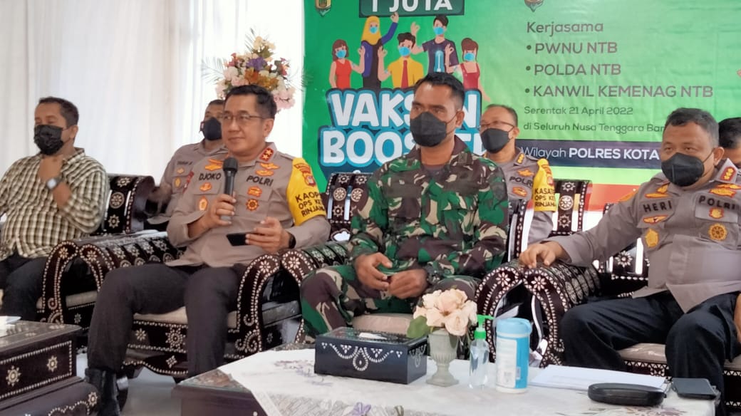 Kapolresta Mataram Kombes Pol Heri Wahyudi SIK MM mengatakan bahwa untuk khusus di Kota Mataram pencapaian Vaksin Dosis 1 sudah aman, dosis 2 sudah 90 % sedangkan dosis 3 masih 25 % dari yang harus dicapai 30 % jadi kita rangkaikan kegiatan dengan Bantuan Tunai PKL, Warung dan Nelayan (BTPKLWN) dan Bantuan Sosial Tunai (BST) Minyak Goreng agar bisa divaksin, terangnya.