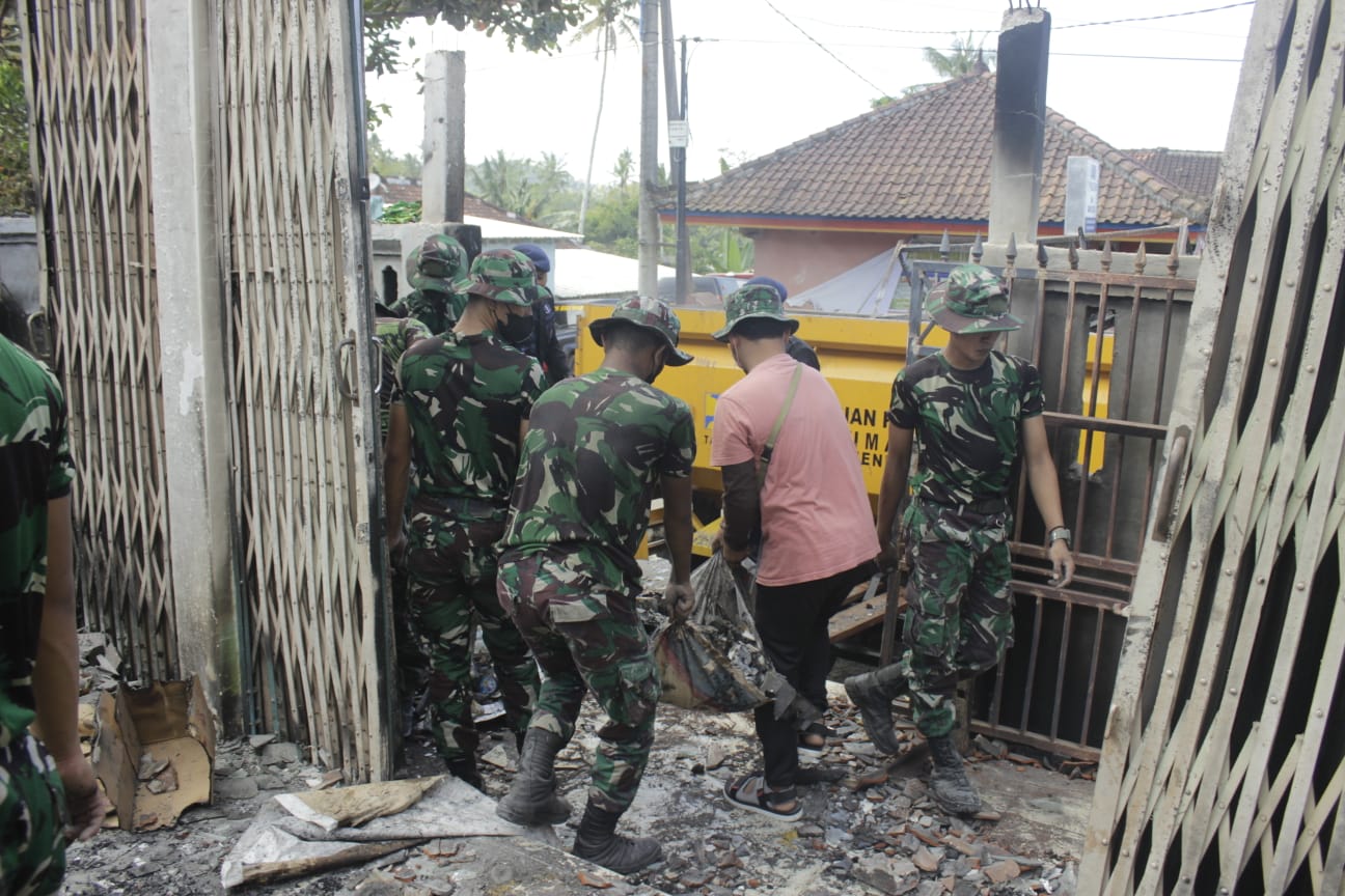 Sebagai bentuk keberadaan TNI ditengah masyarakat, maka kegiatan pembersihan sampah akibat terbakarnya beberapa rumah tersebut tetap kami lakukan hingga selesai dan bahkan TNI siap membantu secara bergotong royong membangun beberapa rumah yang terbakar tersebut.