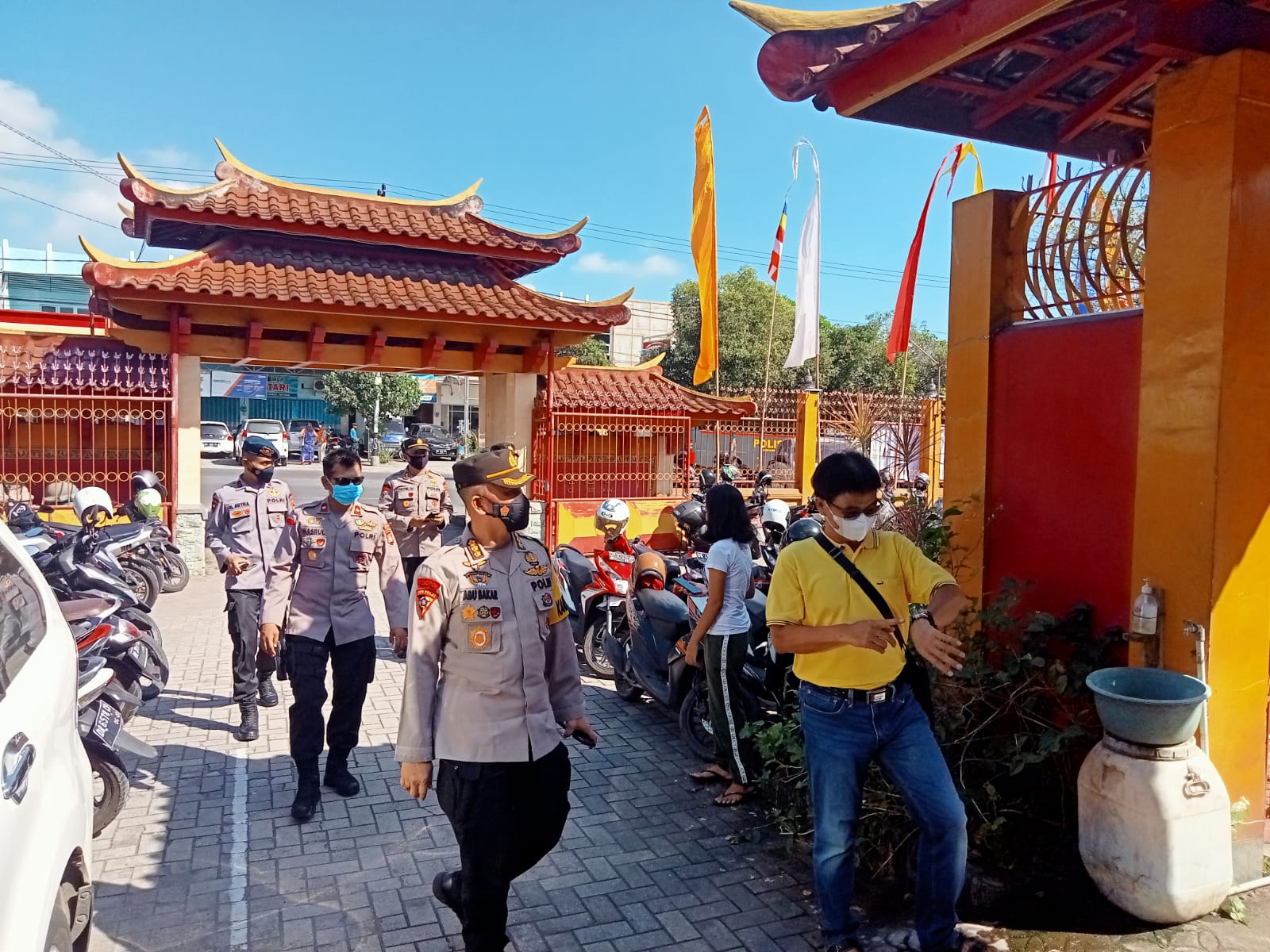 Didampingi Kepala Bagian Operasi (KabagOps) Polresta Mataram Kompol Gede Sumandra Kerthiawan SH MH, Karo Ops Polda NTB memantau sejumlah Vihara di kota Mataram untuk memastikan keamana tempat ibadah Trisuci Waisak.