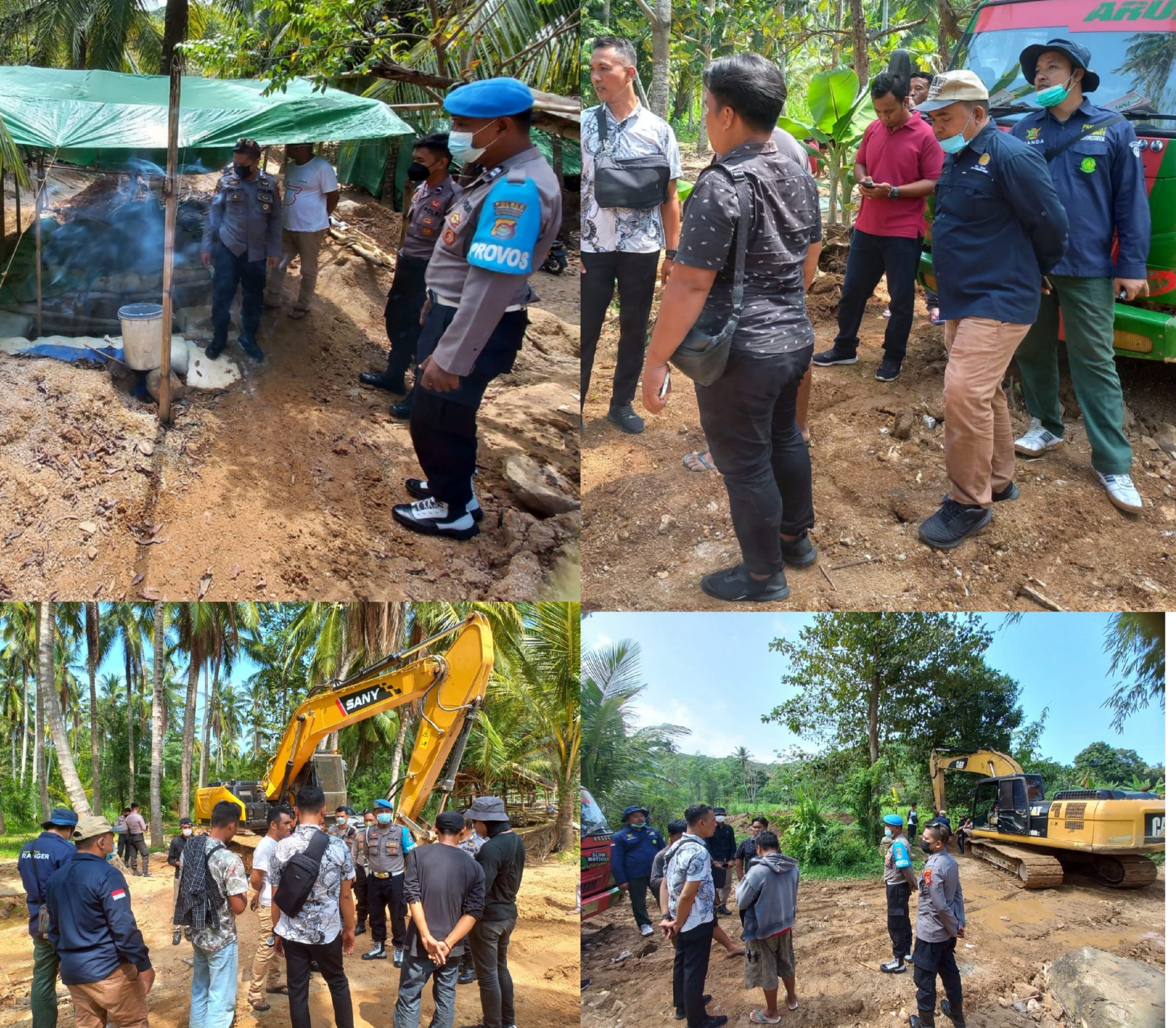 Adapun penertiban lokasi tambang ilegal antara lain lokasi tambang ilegal milik kelompok AH, K dan MO yang berada di Dusun Gunung Tinggang, Desa Prabu, pada lokasi tersebut ditemukan 2 buah alat Berat berupa excavator dan lokasi galian B