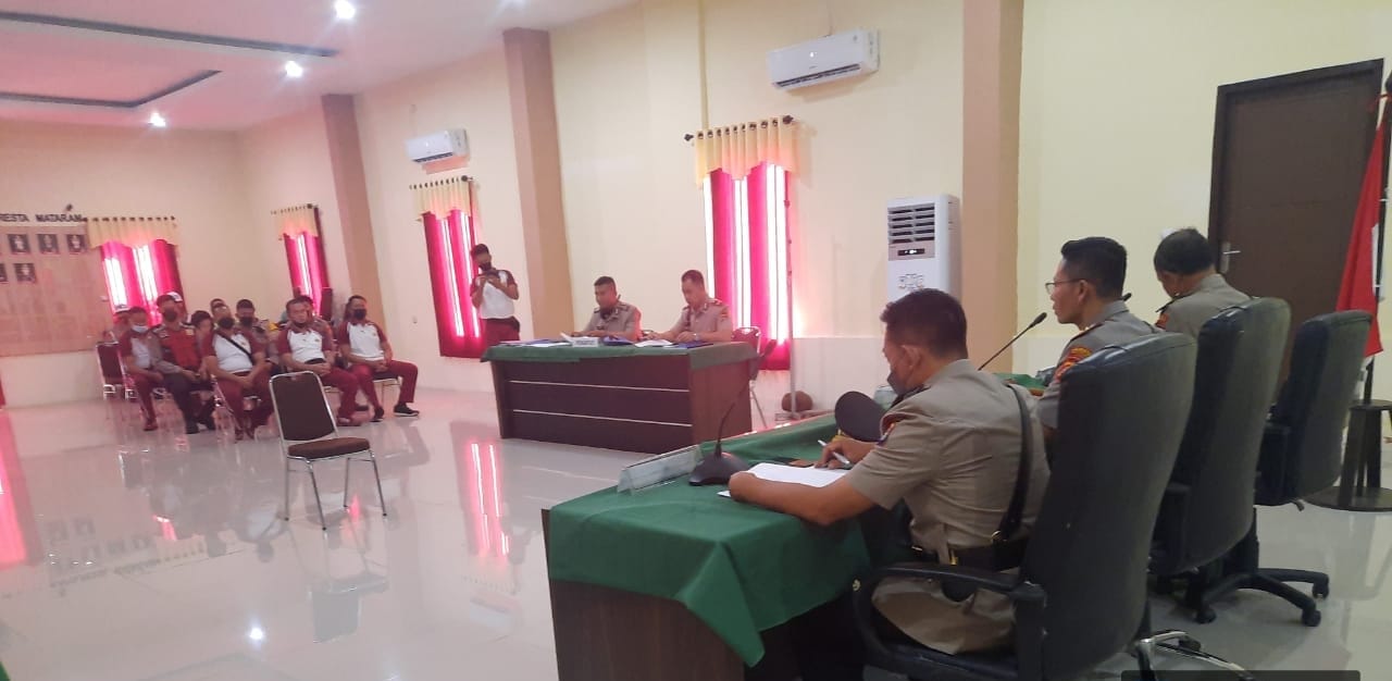 Wakapolresta Mataram AKBP Syarif Hidayat SH SIK memimpin jalannya sidang disiplin bagi anggota Polri yang melakukan pelanggaran disiplin, bertempat di Gedung Wira Pratama Polresta Mataram, Sabtu (28/05/2022).H