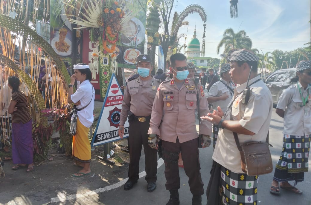 Polsek Sandubaya Amankan Prosesi Upacara Mendak Tirta Pura Penataran Sweta
