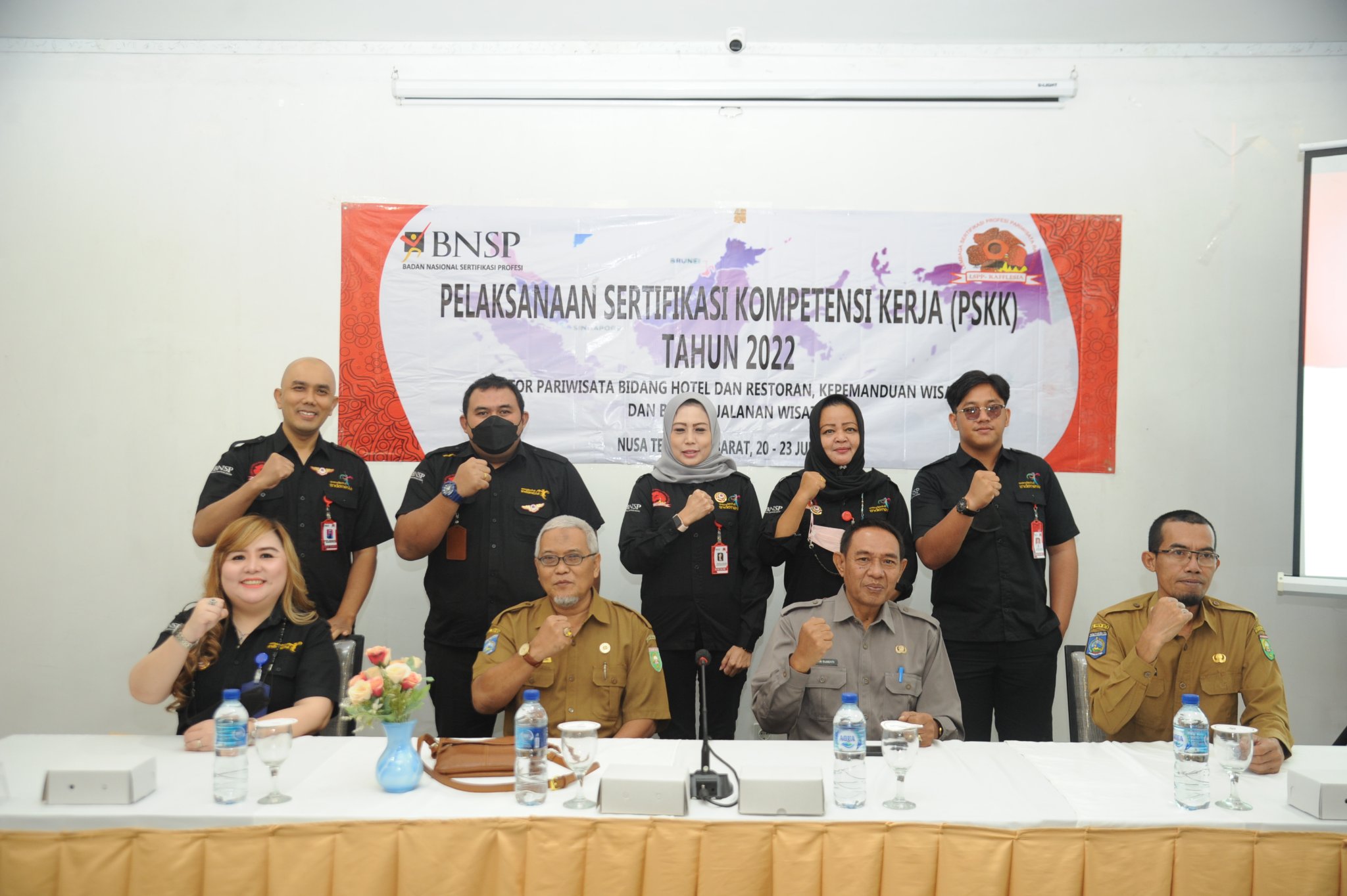 Sumbawa, infoaktualnews.com – Bupati Sumbawa, diwakili Staf Ahli Bidang SDA dan Kemasyarakatan Drs. Zainal Abidin, membuka secara resmi Pelaksanaan Sertifikasi Kompetensi Kerja (PSKK) Tahun 2022, oleh Lembaga Sertifikasi Profesi Pariwisata Rafflesia kerjasama dengan Badan Nasional Sertifikasi Profesi (BNSP), Senin pagi, di Aula Hotel Grand Samota, Sumbawa Besar.