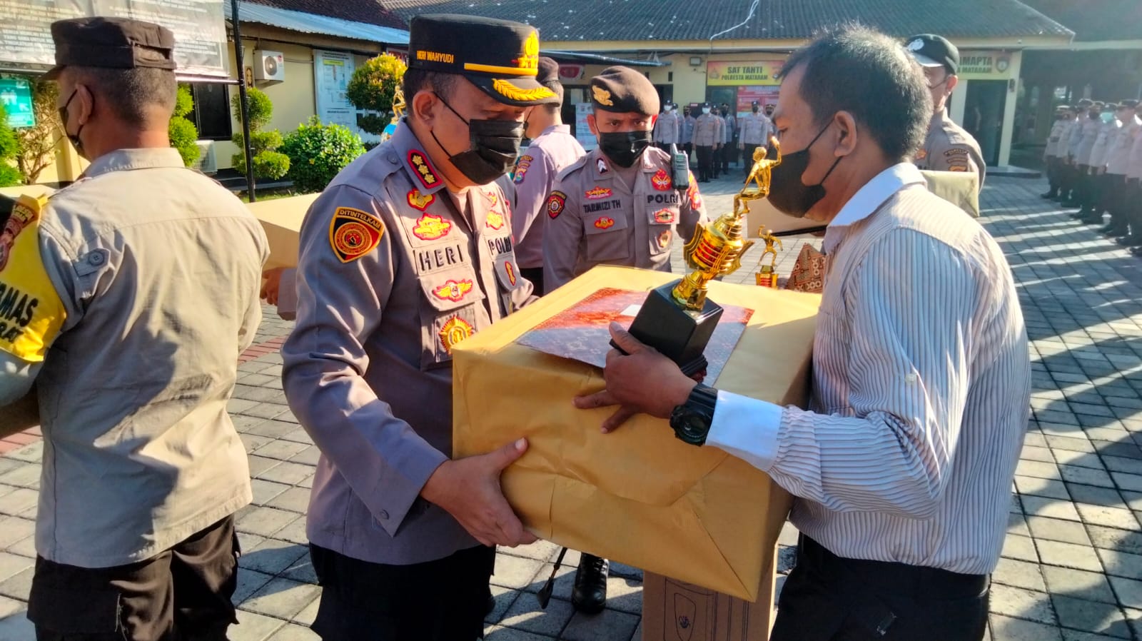 MATARAM ,infoaktualmews.com – Ditengah-tengah pelaksanaan apel pagi, Kapolresta Mataram Kombes Pol Heri Wahyudi SIK MM memberikan hadiah pemenang lomba dan pertandingan dalam rangka Hari Bhayangkara ke-76 di Polresta Mataram, Senin (27/06/2022)