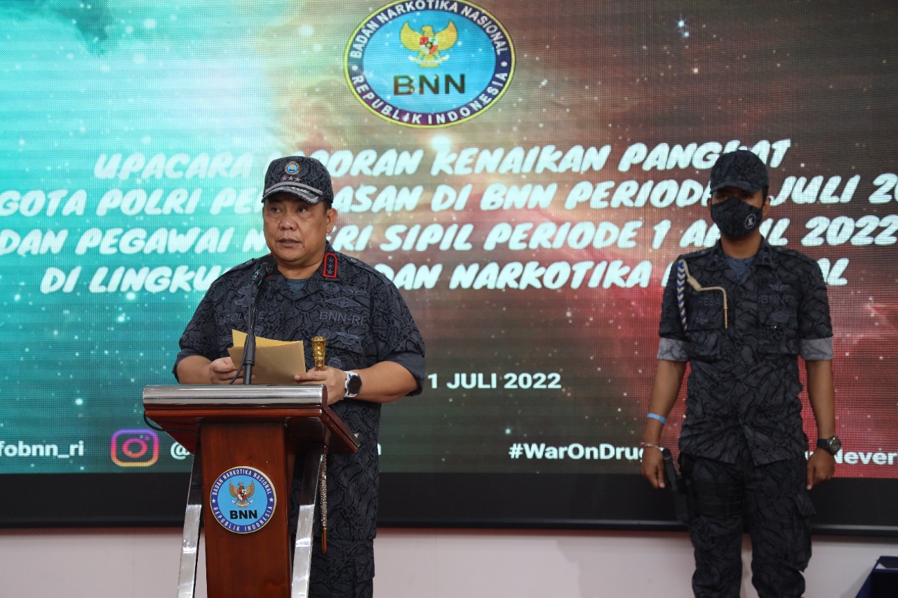 Jakarta, infoaktualnews.com – Badan Narkotika Nasional Republik Indonesia (BNN RI) menggelar Upacara Korps Raport Kenaikan Pangkat Anggota Kepolisian Negara Republik Indonesia (Polri) penugasan di BNN dan Pegawai Negeri Sipil (PNS) di lingkungan BNN.