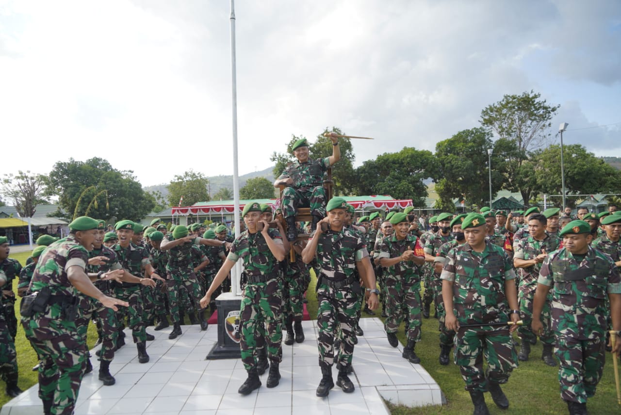 Usai mengunjungi Kodim 1608/Bima, Rombongan Danrem 162/WB melanjutkan peninjauan di Kompi Senapan A Yonif 742/SWY dan memberikan arahan kepada prajurit, Senin (11/7/2022).