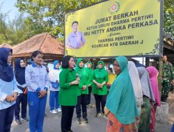 Mataram NTB | infoaktulanews.com – Ketua Dharma Pertiwi Koorcab NTB Daerah J  Ny. Asmeri Aris Nurcahyo didampingi Ny. Susanti Puji Sukawati, S.E., beserta Pengurus persit jajaran Korem 162/WB menggelar Jumat Berkah Bansos (Bantuan sosial) untuk menindak lanjuti amanah Ibu Hetty Andika Perkasa selaku Ketua Umum Dharma Pertiwi dengan berbagi kasih sesama, Jumat (14/07/2022).