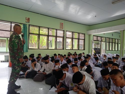 Infoaktualnews.com l Lombok Timur – Danramil 1615-01/Selong Kapten Inf Agil memberikan ceramah bela negara kepada ratusan siswa-siswi Madrasah Aliyah Negeri (MAN) 1 Selong di Aula MAN Selong Kabupaten Lombok Timur, Sabtu (16/7).