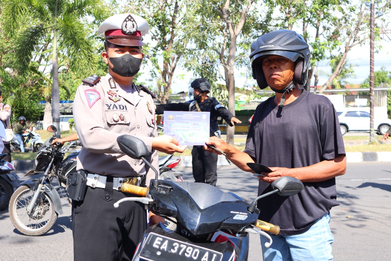 kami memberikan buku petunjuk keselamatan berlalu lintas kepada para pengendara terutama para pelanggar ini tujuan nya agar pengendara mengetahui pentingnya mentaati peraturan berlalu lintas demi keselamatan.
