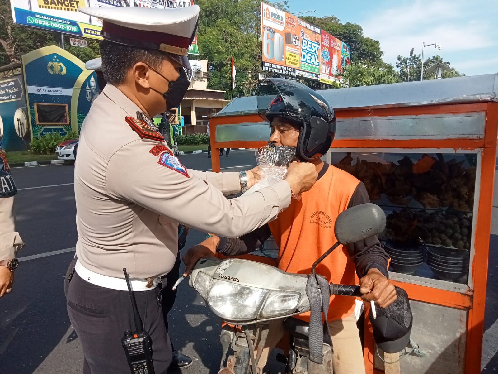 Selain pemberian helm, Polisi berikan teguran kepada pengendara untuk tidak mengulangi kesalahan yang berulang dengan tidak membawa helm saat berkendara.