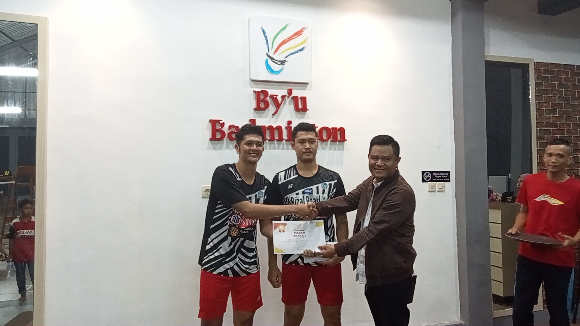Usai melaksanakan pertandingan Turnamen Bulutangkis Perang Bintang IJU Cup satu hari di gedung Gor BY’U Badminton Meninting, dilanjutkan dengan pembagian hadiah kepada para Juara 1,2,3 dan 4 yang diberikan langsung oleh Ketua DPD Partai Demokrat NTB, Indra Jaya Usman.(Dani/Rzl).