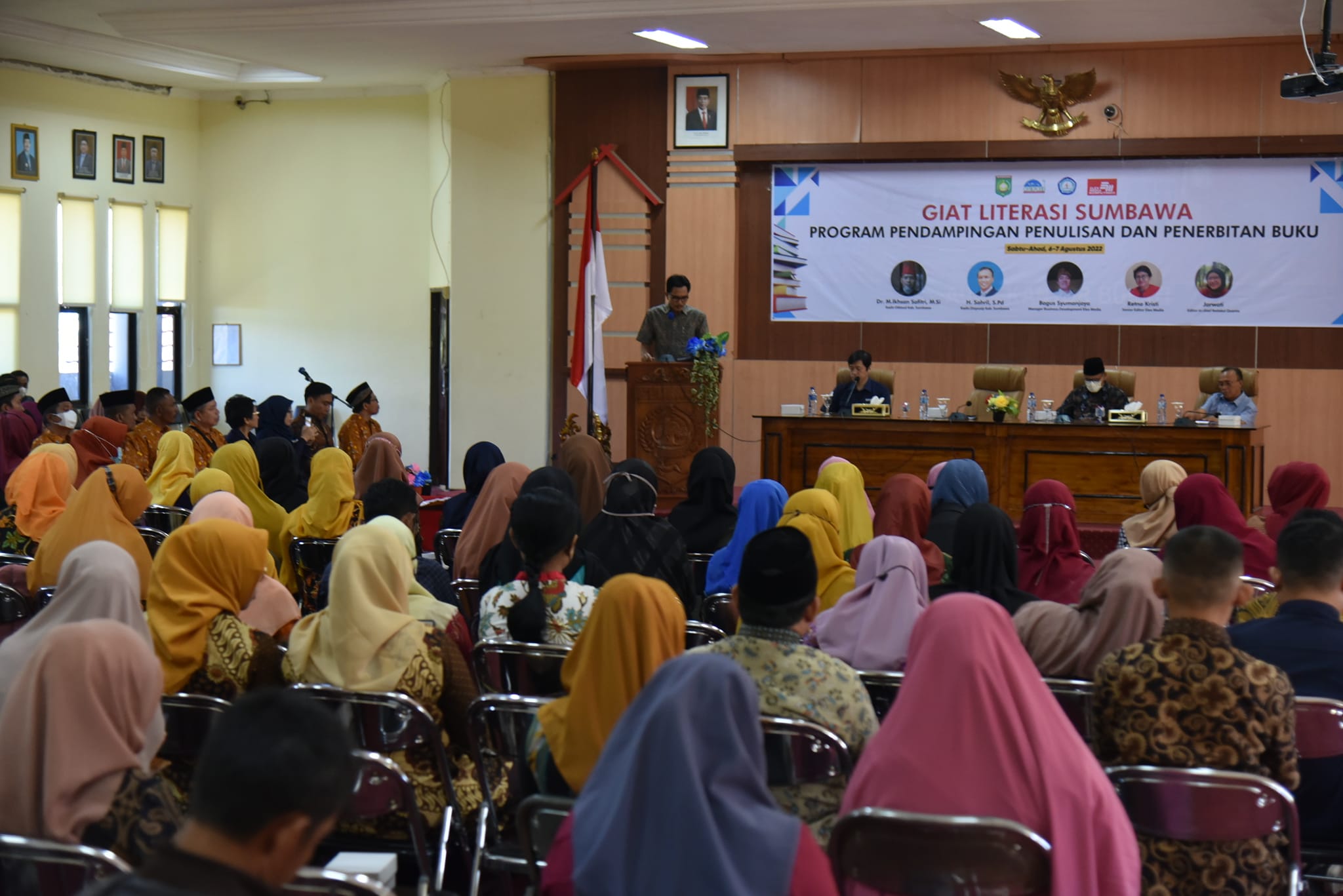 Bupati Sumbawa Drs H Mahmud Abdullah yang pada kesempatan ini disampaikan oleh Staf Ahli Bidang Pemerintahan, Hukum dan politik bahwa Selaku Pimpinan Daerah saya mengapresiasi kegiatan Giat Literasi Dan Penulisan Buku,dalam meningkatkan indeks literasi masyarakat sebagai upaya membangun kualitas sumber daya manusia untuk Nusa Tenggara Barat dan Kabupaten Sumbawa melalui kesadaran Literasi.