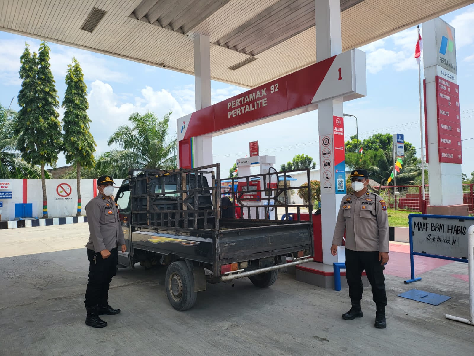 Benar menjamin keamanan dan kenyamanan adalah tugas Polisi Terkhusus di di Obyek Vital seperti SPBU, Pasar dan lainnya, dengan menggunakan kendaraan dinas.