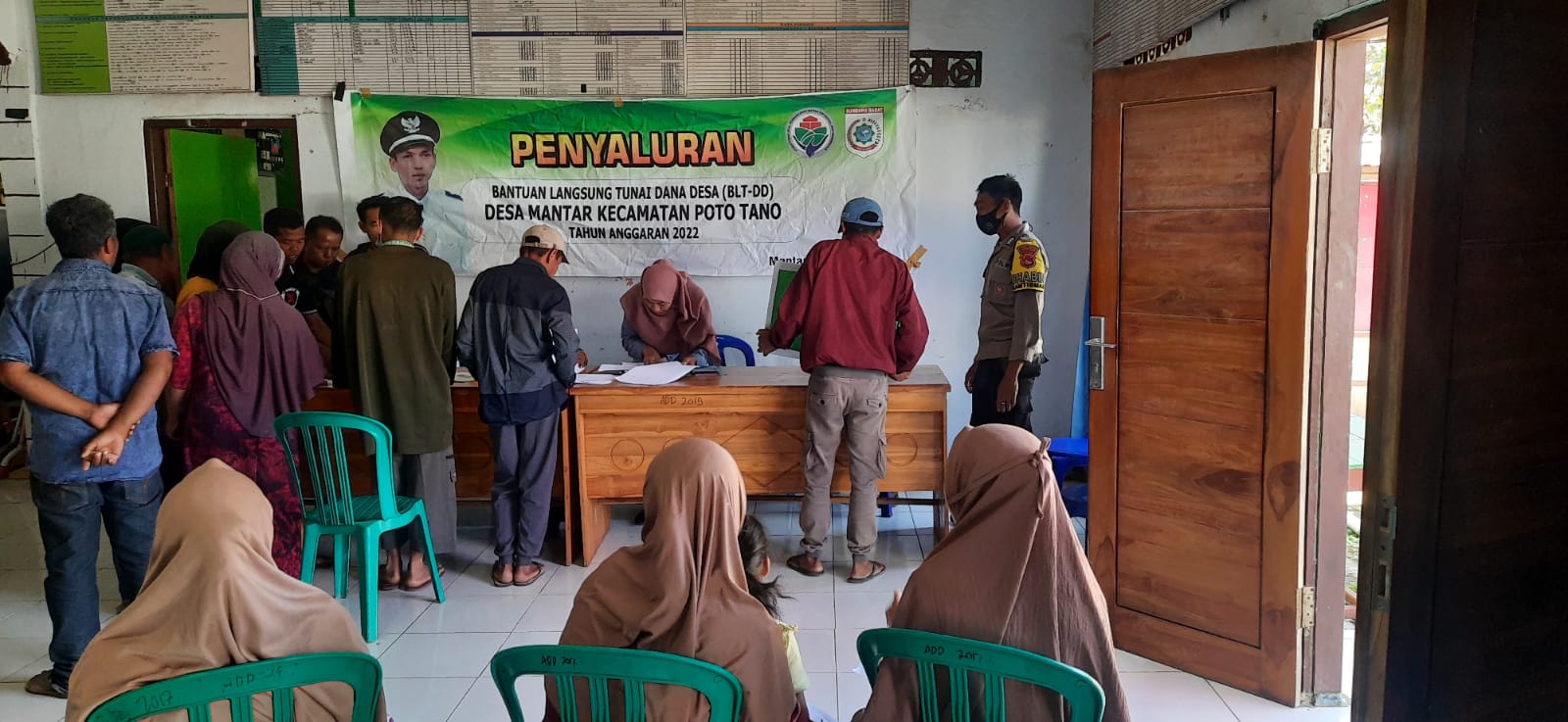 SUMBAWA, infoaktualnews.com_ Bhabinkamtibmas Desa Mantar Kecamatan Poto Tano, Polsek Poto Tano Polres Sumbawa Barat Brigadir Zulharman Kurnia Putra mendampingi penyaluran bantuan langsung tunai (BLT) di kantor Desa Mantar