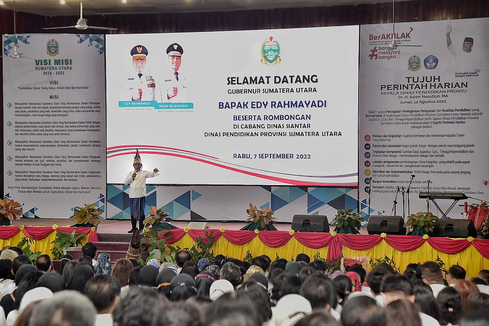 “Perubahan itu salah satunya di sini, yang dimulai dari dunia pendidikan. Ini bisa ditumbuhkan dengan percepatan peningkatan pelayanan dan kualitas pendidikan yang bermartabat di lingkungan Dinas Pendidikan,” ucap Edy Rahmayadi.
