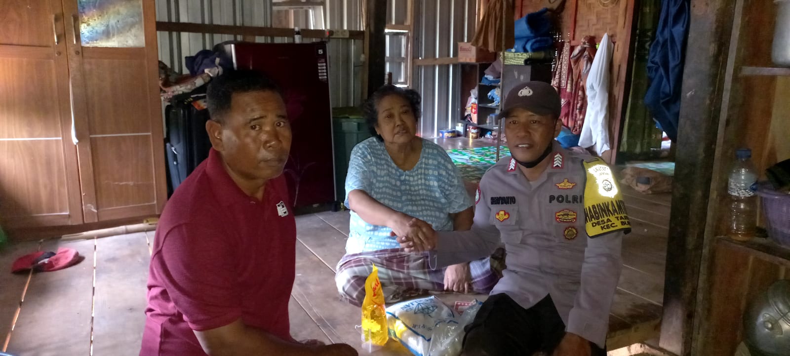Pada kesempatan tersebut, Bhabinkamtibmas Desa Tarusa Bripka Heriyanto didampingi oleh Kadus Tarusa bawah bpk Ahmad Muhammad memberikan bantuan sembako kepada Ibu Haminah yang dalam kondisi lumpuh dan Ibu Maning yang mengalami kebutaan.