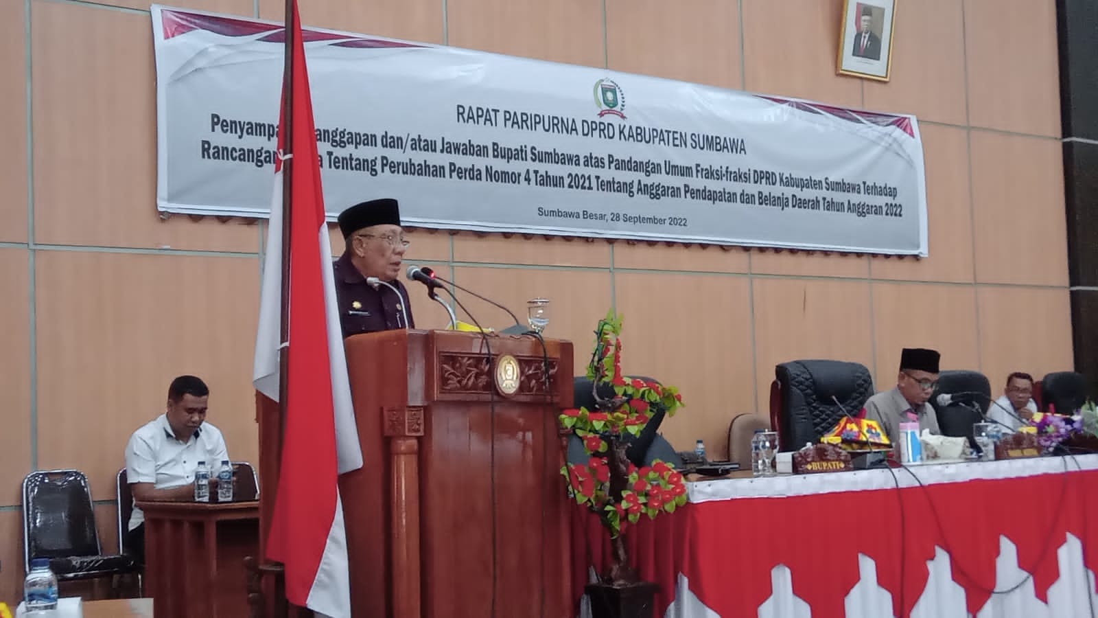 Wakil ketua DPRD Kabupaten Sumbawa Samsul Fikri S.Ag membuka secara langsung rapat paripurna, Pada kesempatan tersebut Bupati Sumbawa menyampaikan jawaban terhadap Pandangan umum fraksi-fraksi DPRD Kabupaten Sumbawa Atas Rancangan Peraturan Daerah Tentang Perubahan Atas Peraturan Daerah Nomor 4 Tahun 2021 Tentang Anggaran Pendapatan Dan Belanja Daerah Tahun Anggaran 2022.