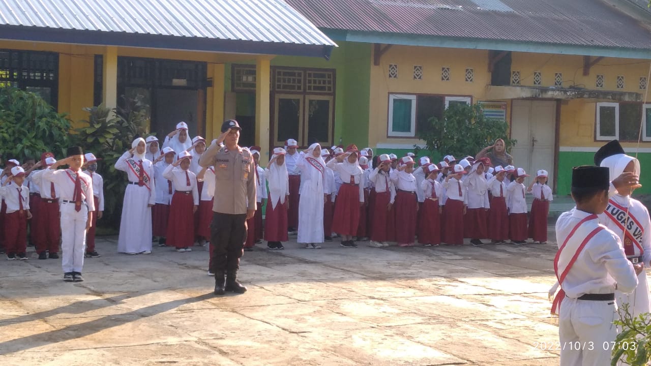 Dalam kegiatan tersebut, Aiptu Khairil yang berkesempatan menjadi pembina upacara menyampaikan dan memberikan pesan serta motivasi semangat belajar kepada para pelajar.