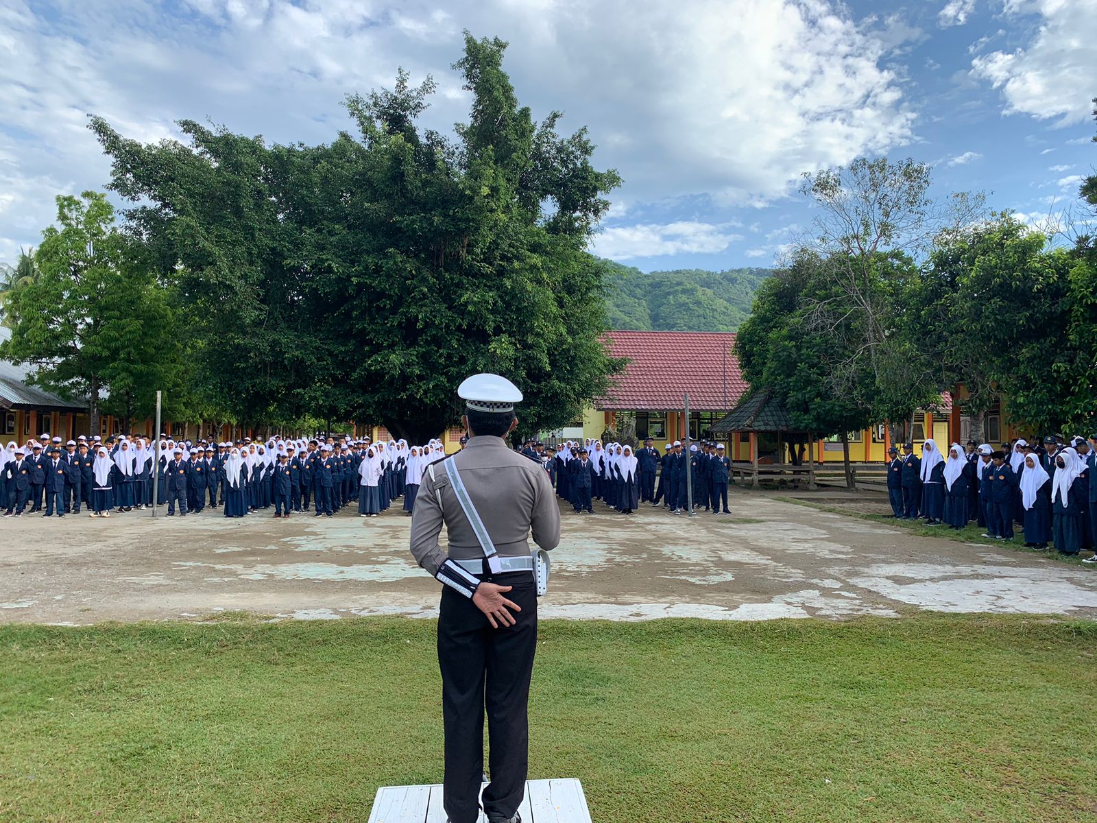 KSB ,infoaktualnews.com _ Satuan Polisi Lalu Lintas Polres Sumbawa Barat menghadiri upacara bendera dan penyulahan tentang pentingnya tertib berlalulintas kepada Guru & Siswa SMPN 3 Taliwang. Bertempat di lapangan SMPN 3 Taliwang Kecamatan Taliwang Kabupaten Sumbawa Barat pada senin (31/10/22).