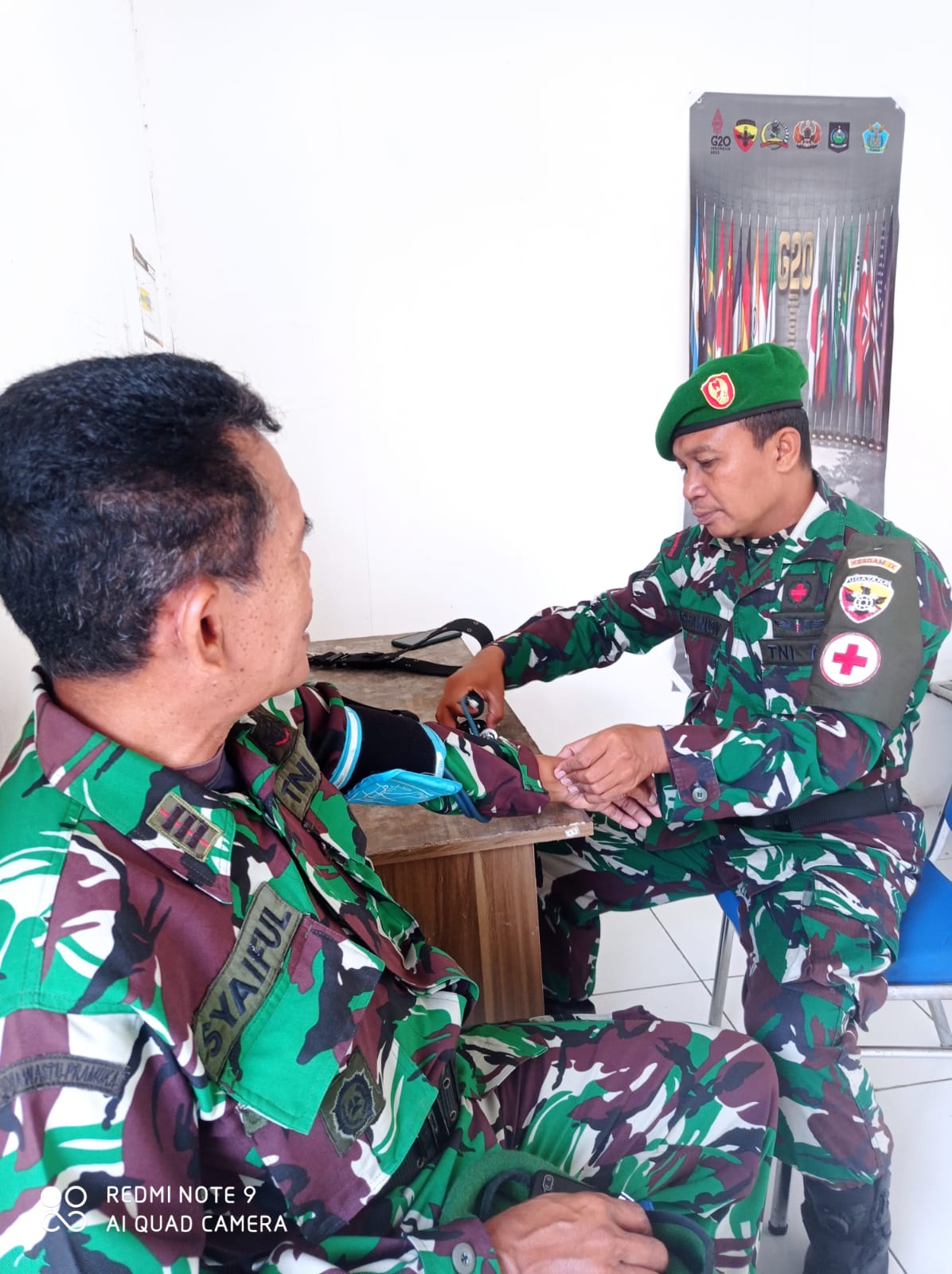 Gili Mas NTB – Personel Subsubsatgas Evakuasi Medis KTT Presidensi G20 Wilayah NTB sambil melaksanakan tugas siaga di Posnya juga berupaya memberikan pelayanan kesehatan kepada personil Subsatgas di Pos Komando Taktis Pelabuhan Gili Mas, Kabupaten Lombok Barat, Minggu ( 13/ 11 / 22 ).