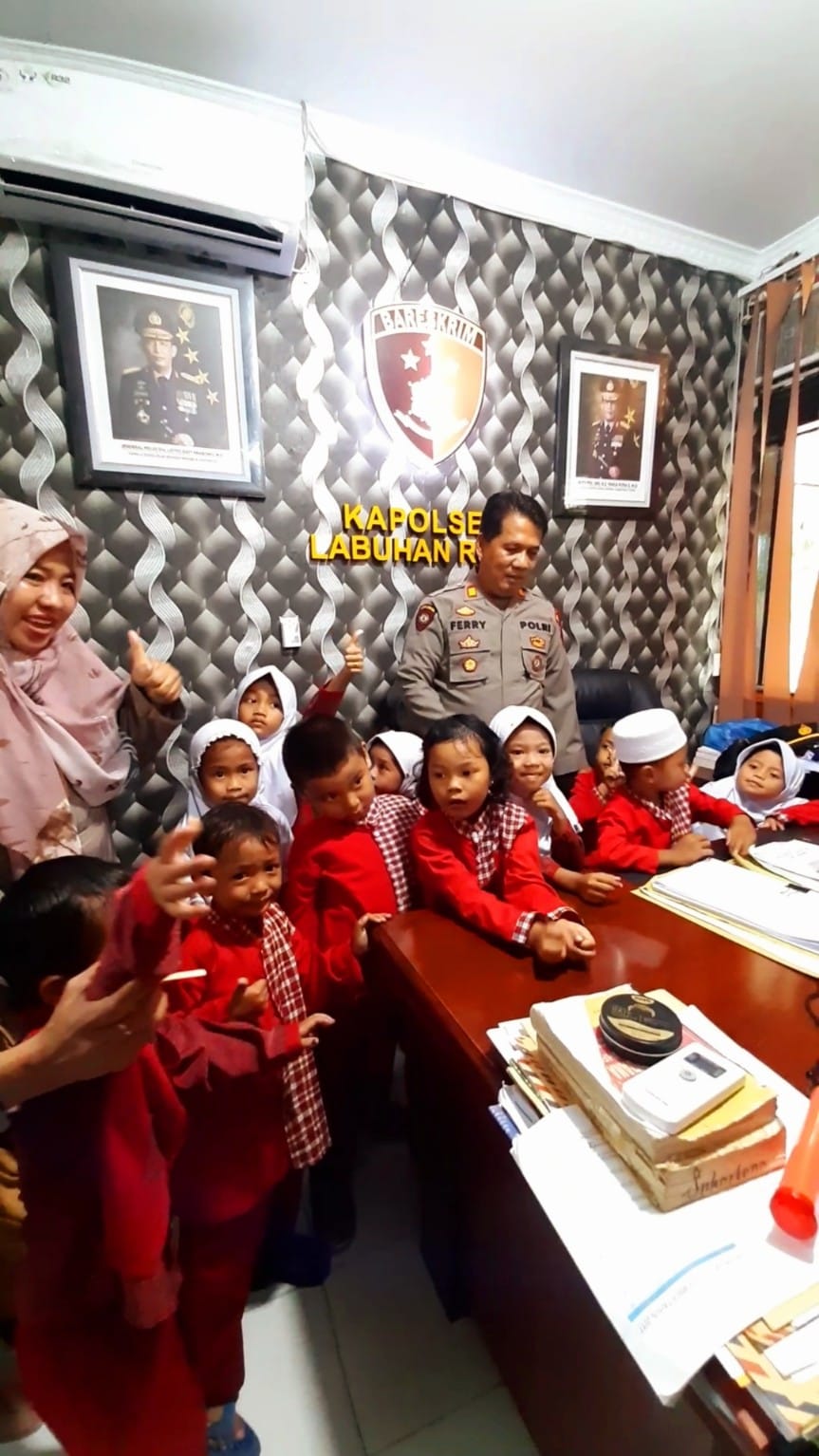 Menjadikan polisi sebagai sosok inspirasi, sebanyak 60 anak PAUD didampingi orang tua dan Guru, memilih mengunjungi Polsek Labuhan Ruku, yang dinilai layak untuk dijadikan panutan bagi anak-anak mereka.