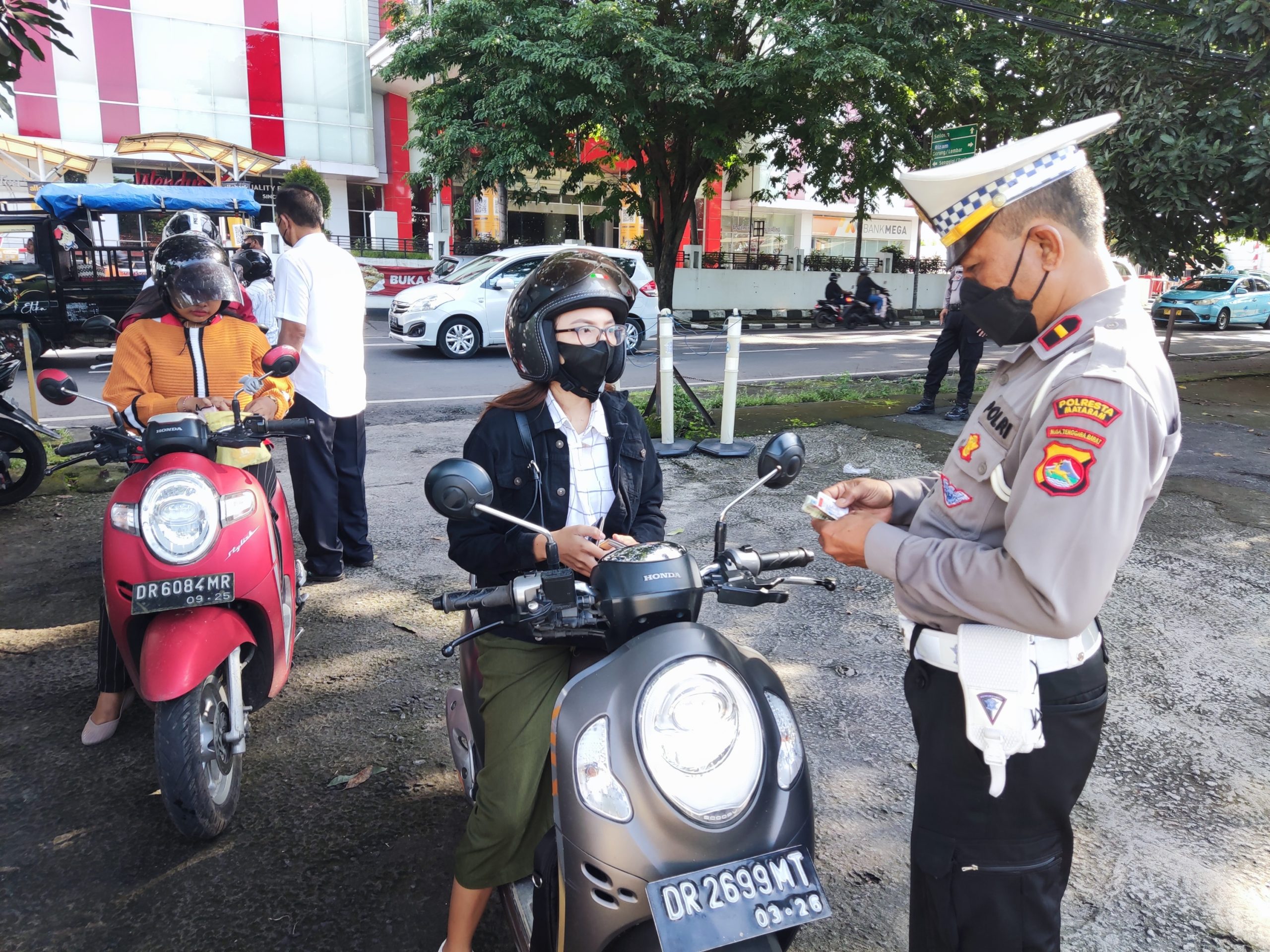 Dalam pelaksanaan kegiatan razia kendaraan bermotor tersebut berhasil dilakukan tindakan Peneguran terhadap 30 orang pengendara Roda 2 yang melakukan pelanggaran tidak menggunakan helm dan tidak dapat menunjukkan SIM “, bebernya