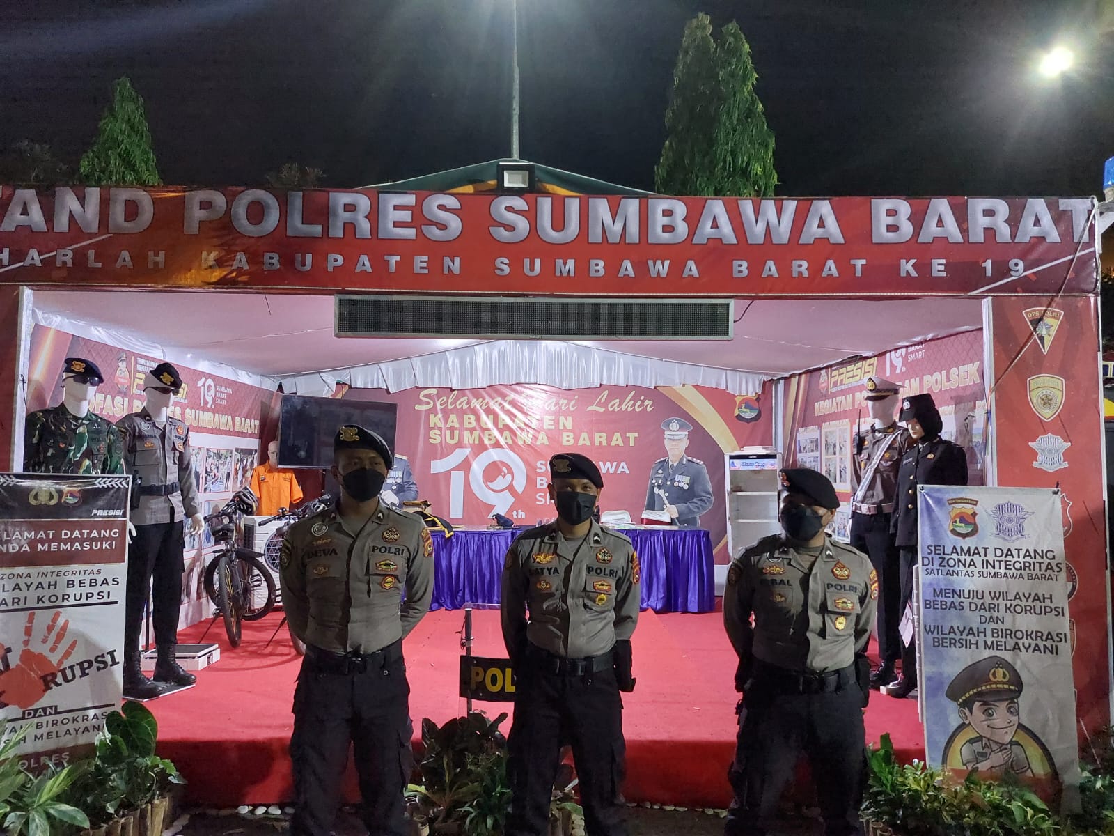 Kapolres Sumbawa Barat AKBP Heru Muslimin, S. Ik., M. IP melalui Kasi humas IPDA Eddy Soebandi S. Sos mengatakan bahwa, anggota Satuan Samapta Polres Sumbawa Barat yang diturunkan mengamankan stand Pameran sebanyak 3 orang Personil satuan Samapta yaitu, Bripda Deva Wahyu Septianto, Bripda Sabda Satya Dirgantara, dan Bripda M. Iqbal Hambali.