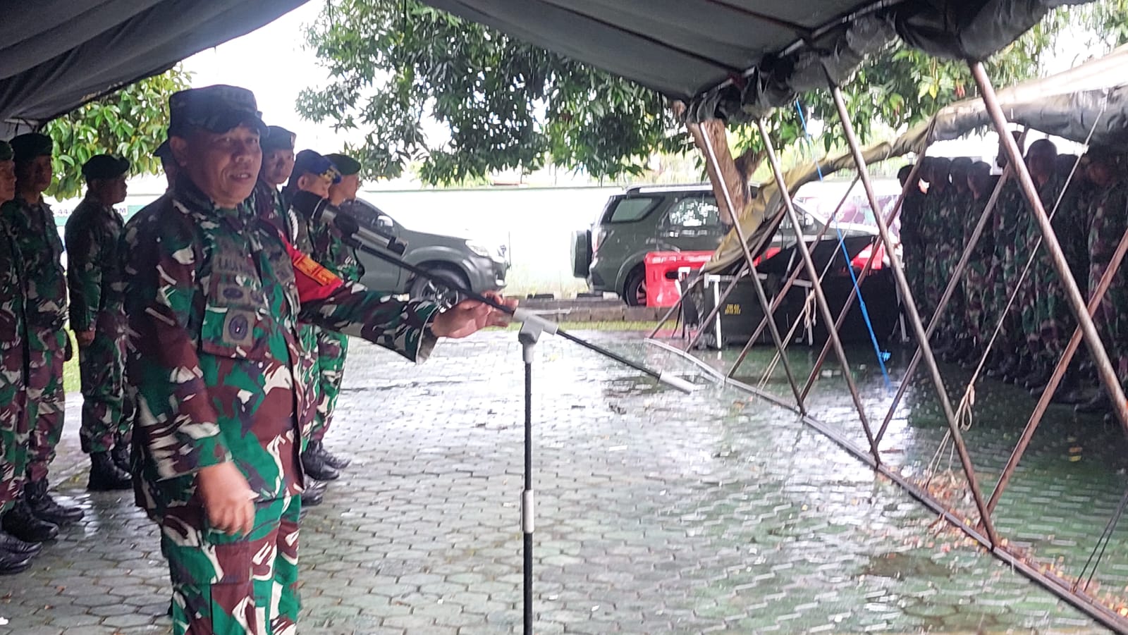 Mataram NTB – Kepala Staf Korem 162/WB Kolonel Inf Lalu Habibburahhim Wiradarma, S.I.P., M.Si., M.Han. Selaku Komandan Sub Satgas Evakuasi Wilayah NTB, pagi ini dibawah guyuran Hujan mengambil Apel dilapangan Gatot Subroto Makorem Jl. Lingkar Selatan, Jum’at 18/11/22 sekaligus menyampaikan bahwa hari ini Seluruh Personil bisa Full out kembali ke Satuannya masing masing.