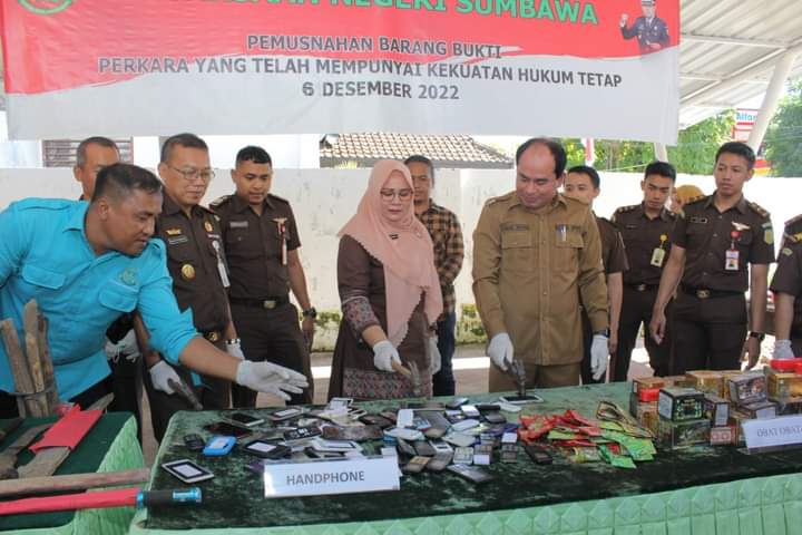 Sumbawa, infoaktualnews.com – Sejumlah Barang Bukti (BB) hasil sitaan negara senilai miliaran rupiah dimusnahkan aparat Kejaksaan Negeri Sumbawa, Selasa (6/12).