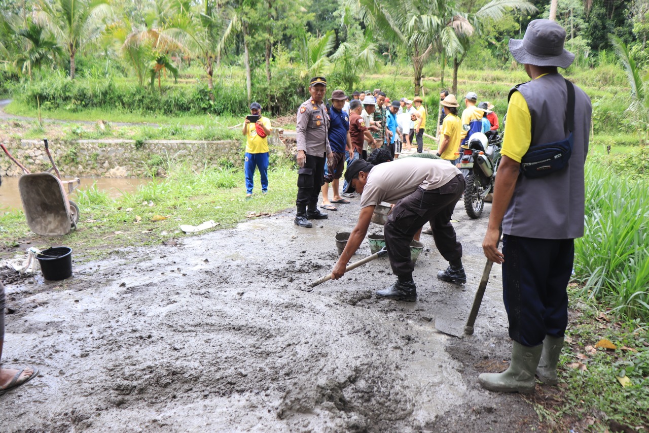 Kapolsek Kopang AKP Suherdi menyampaikan lebih lanjut bahwa dalam kegiatan gotong royong pihaknya bersama anggota terjun langsung membantu pengecoran jembatan tersebut dengan tujuan agar proses pengerjaannya segera rampung dan dapat segera dimanfaatkan oleh masyarakat sebagai salah satu akses jalan penghubung.