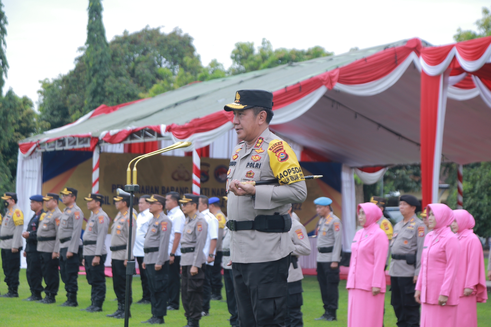 Hadir pada Upacara tersebut, Ibu ketua Bhayangkari Polda NTB, Waka Polda NTB, Irwasda Polda NTB, serta segenap PJU Polda NTB.