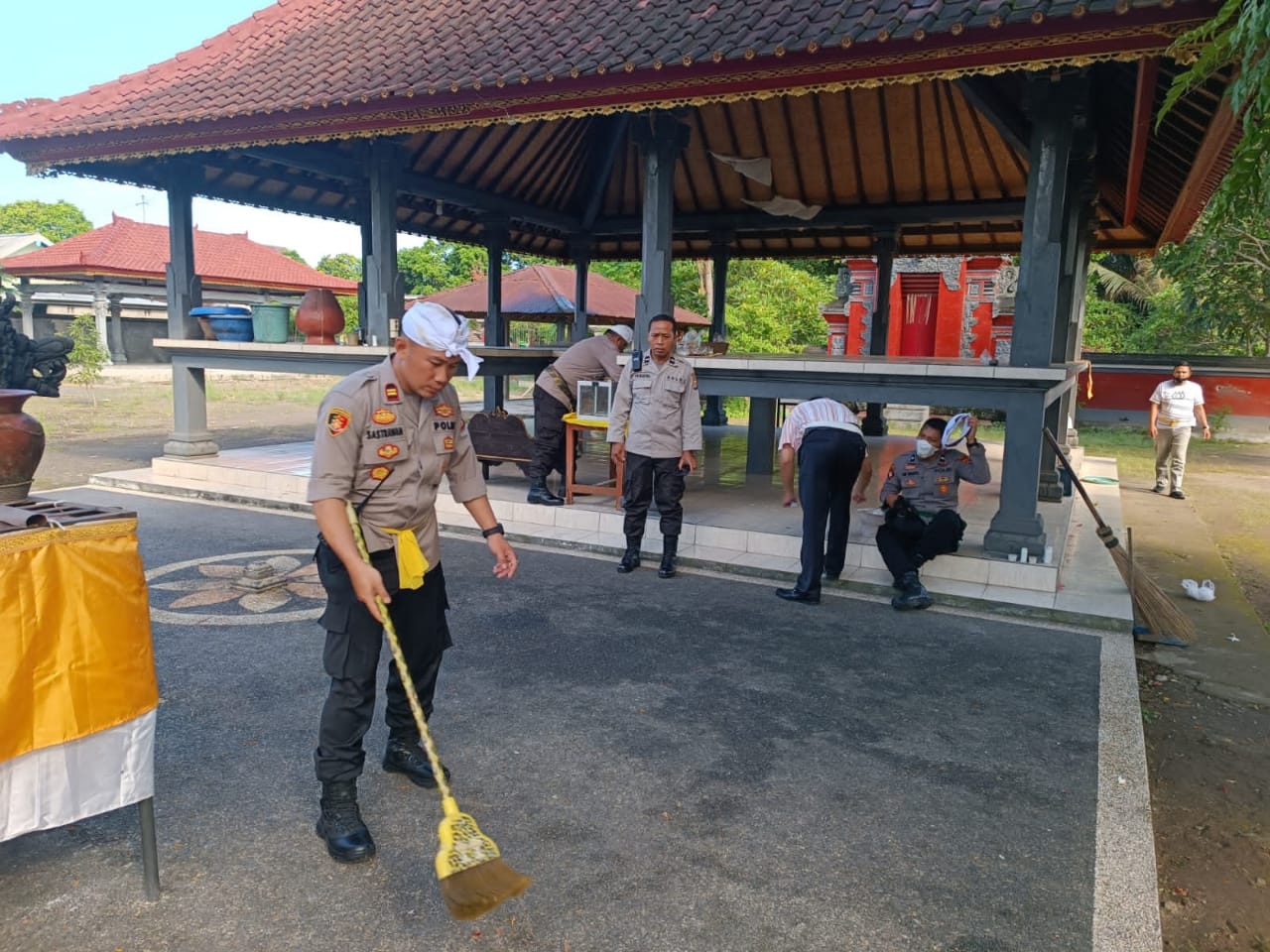 Kapolresta Mataram melalui Kapolsek Pagutan Iptu I Putu Sastrawan SH mengatakan bahwa sesudah melaksanakan kegiatan persembahyangan kemudian dilanjutkan dengan kegiatan gotong royong dalam bentuk bersih-bersih di dalam areal Pura.