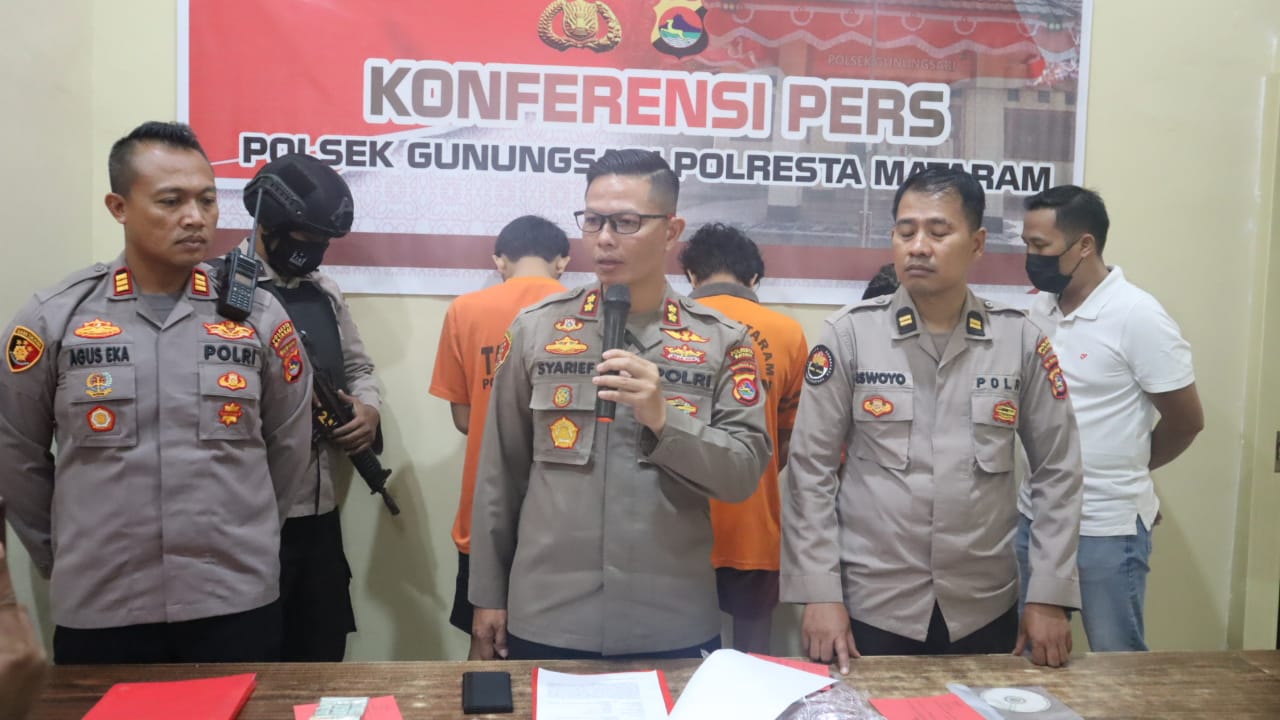 LOMBOK BARAT, infoaktualnews.com_ Tim Opsanl Sat Reskrim Polsek Gunungsari berhasil inisial R (22) Alamat lingkungan Sayang-sayang Kota Mataram lantaran di duga melakukan tindak pidana pencurian 2 unit sepeda motor milik dari teman sendiri pada tanggal 31 Desember 2022 di wilayah Taman sari kecamatan Gunungsari Lombok Barat.ungkap Wakapoltesta Matatam AKBP Syarif Hidayat SH.SIK saat konfresi pers di polsek Gunungsari dengan di dampingi Kapolsek AKP Agus Eka Artha Sujana SH dan kasi Humas IPTU Siswoyo SH.jumat ( 6/1/23 )