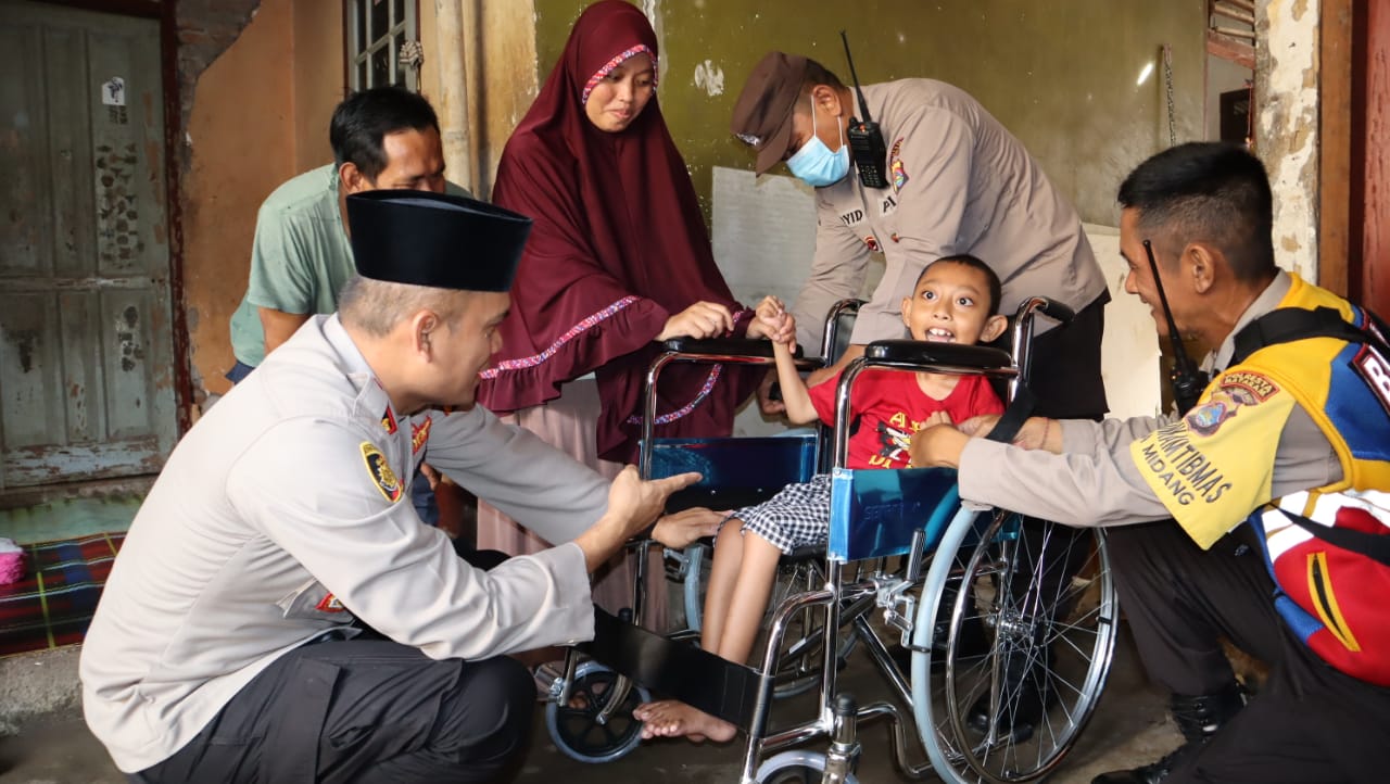 Pada kesempatan tersebut Kombes Pol Mustofa SIK MH saat tiba di lokasi langsung memberikan bantuan sosial berupa kursi roda kepada Sdr. Fathul Aziz, umur 8,5 tahun yang mengalami disabilitas cacat lumpuh sejak dari lahir beserta bantuan sembako kepada keluarga.