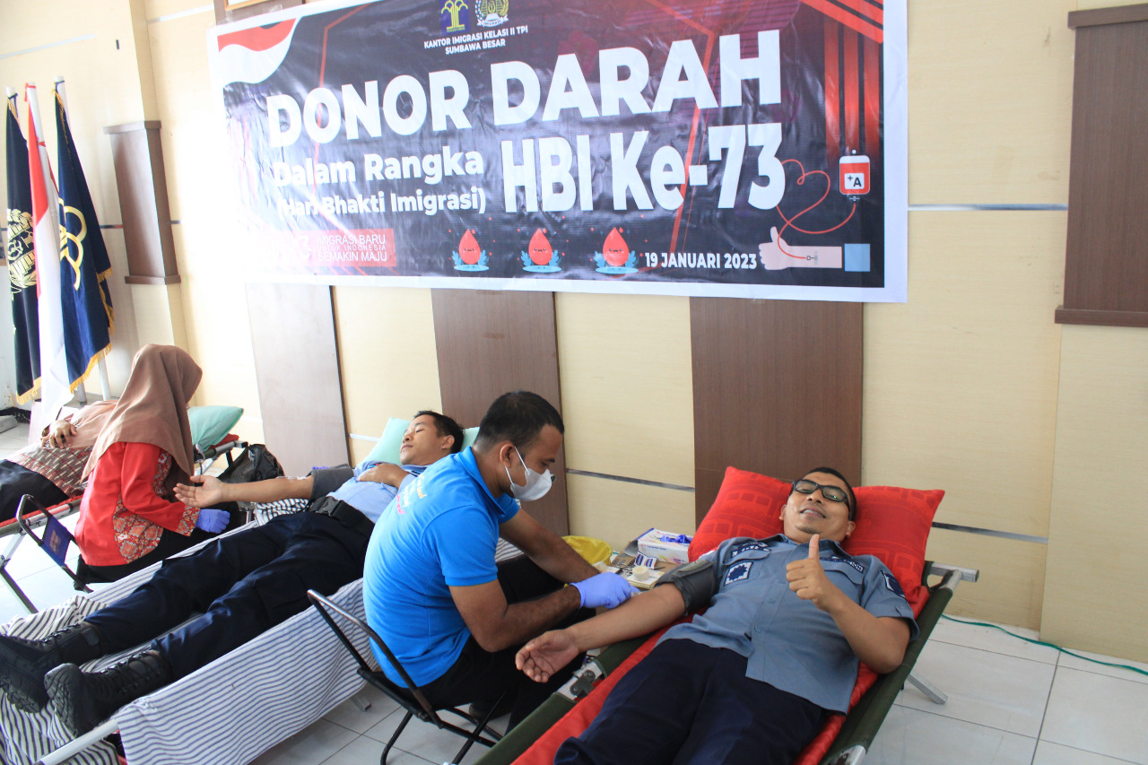 Sumbawa, infoaktualnews.com – Dalam rangka memperingati Hari Bhakti Imigrasi ke 73, Kantor Imigrasi (Kanim) Kelas II TPI Sumbawa Besar Kanwil Kemenkumham NTB melaksanakan donor darah.