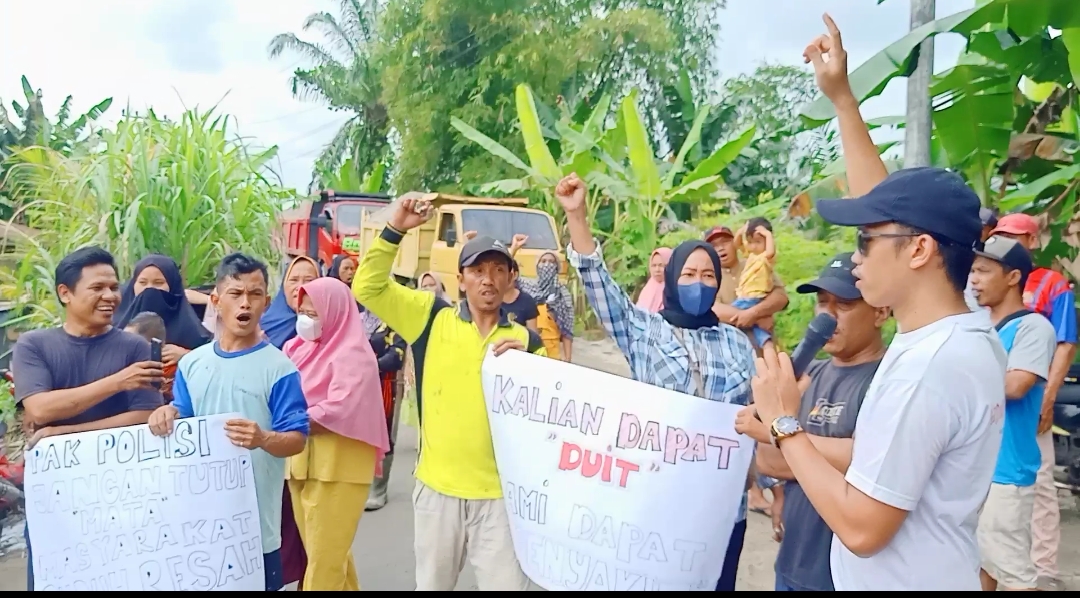 Warga sangat kesal dengan pengusaha galian C yang selama ini tidak perduli dengan lingkungan yang terdampak akibat beroperasinya truk pengangkut pasir di sepanjang jalan Datuk Umar Palangki Desa Tanah Merah.