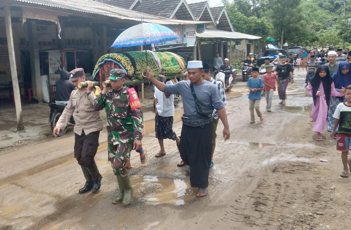 Sekotong Lobar NTB – Sertu Gusti Made Ariawan, Bintara Pembina Desa (Babinsa) Koramil 1606-06/sekotong Kodim 1606/Mataram bantu prosesi pemakaman salah satu warga binaannya yang meninggal dunia karena tanah longsong dan banjir di wilayah kecamatan Sekotong Kabupaten Lombok Barat. akibat curah hujan tinggi Senin (3/1/2023).