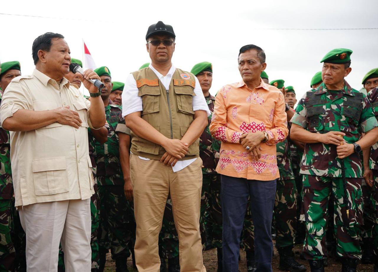 “Tugas daripada teman-teman TNI untuk menjaga ini semua dan selalu bekerja sama dengan seluruh rakyat karena pertahanan kita adalah pertahanan keamanan rakyat semesta, seluruh rakyat bertanggung jawab atas ketertiban semuanya” Ujar Menhan.
