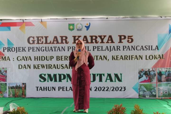 Lanjutnya, P5 yang diangkat pada Tahun ajaran 2022/2023 ada tiga tema, pertama adalah gaya hidup dimana SMP Negeri dengan luas 2,79 Hektar dengan tanaman pohon yang begitu banyak sehingga menjadi dasar untuk membuat pupuk organik yang bahan dasarnya dari daun daun sekeliling, kedua, kearifan local kami membuat lamung pene, cipu, cila dan sapu, ketiga Kewirausahaan karena lingkungan utan ini dekat dengan laut dan pantai sehingga banyak hasil alam berupa potongan kayu yang mungkin bisa kita kreasikan menjadi kreasi yang sederhana yang mempunyai nilai jual.