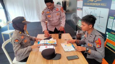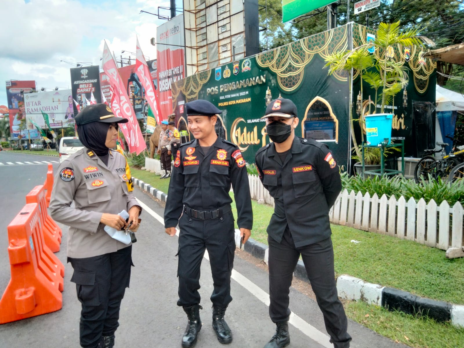 Lanjut Kasi Humas Polresta Mataram Iptu Wiwin Windarti di dampingi PS. Kasubsi Penmas Si Humas Aiptu I Putu Eka Winastra SH mengunjungi Pospam Epicentrum Mall dan Posyan Karang Jangkong.